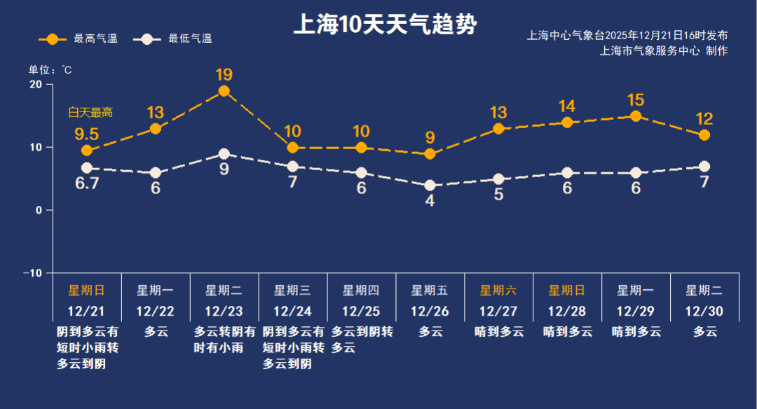 预报显示,明天(22日),上海多云为主,早晨凉意足,市区最低气温6℃,郊区1至3℃。白天升温启动,预计最高气温13℃。周二短暂回暖,最高温飚至19℃。