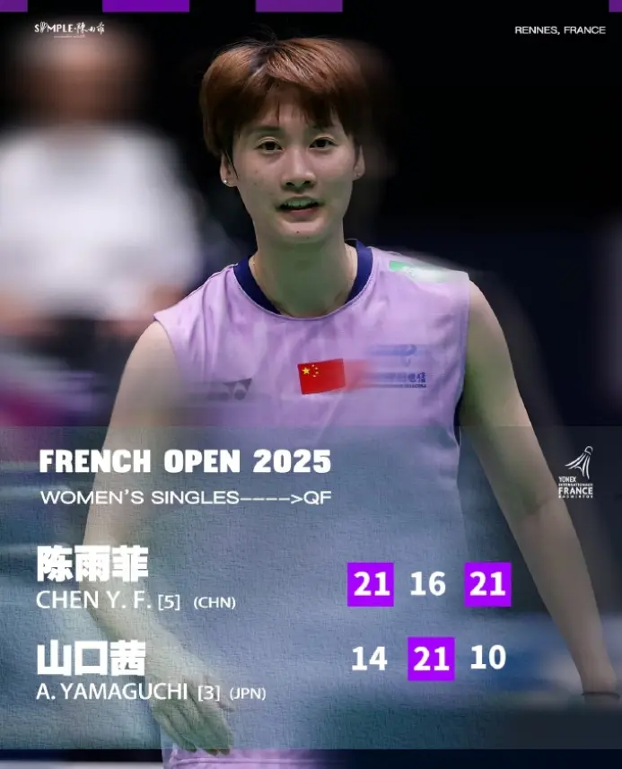 这场比赛后陈雨菲将与山口茜的交手记录改写为14胜22负,目前还是劣势但陈雨菲正在缩小差距,陈雨菲女单半决赛的对手会是世界第一安洗莹。